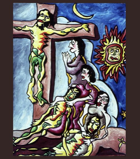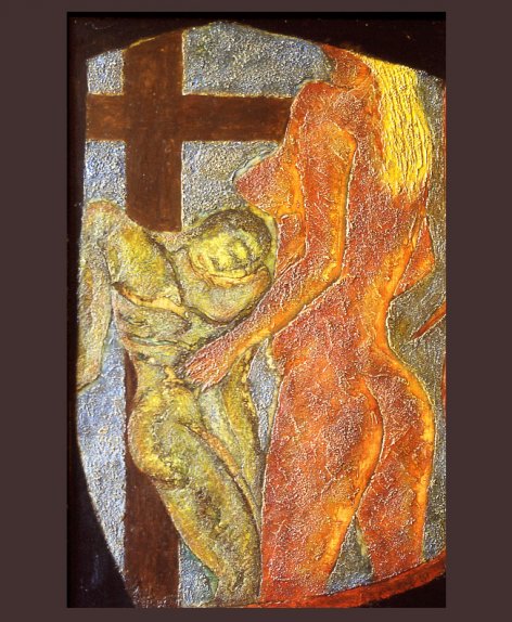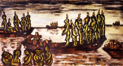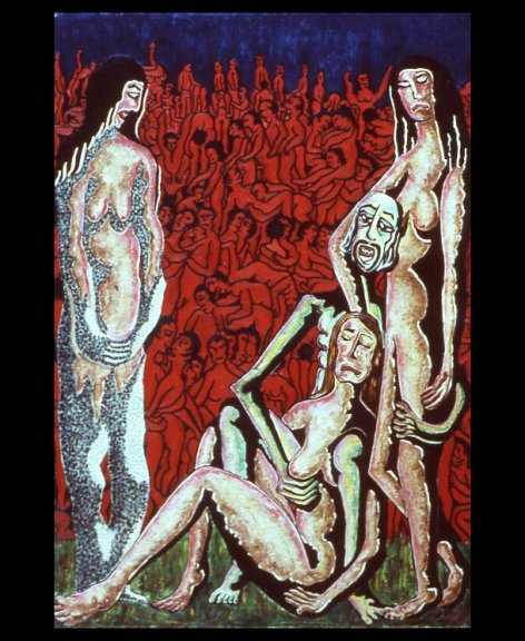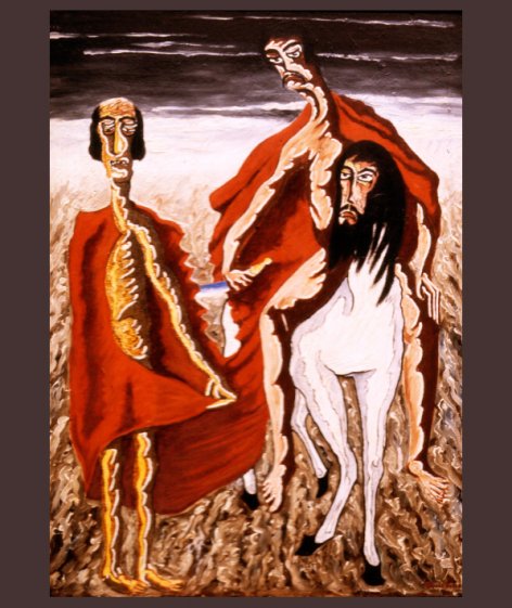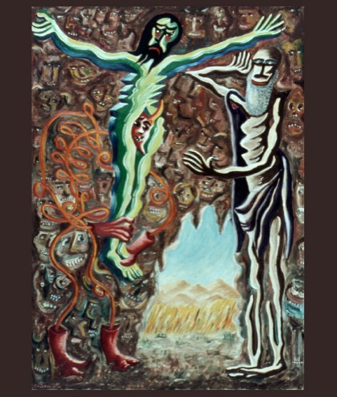 Sodome et Gomore 1954 – 125x89cm Huile sur isorel-Ancienne collection Henri-Pierre ROCHÉ- Figure dans le livre page n°76 -« TELLA un témoin à l’œil aigu »-(autoédition 2013)-reproduit dans le livre « TELLA » par Guy (Paris,Arcam 1976)-n°16-1971(le Puits de l »Ermite)