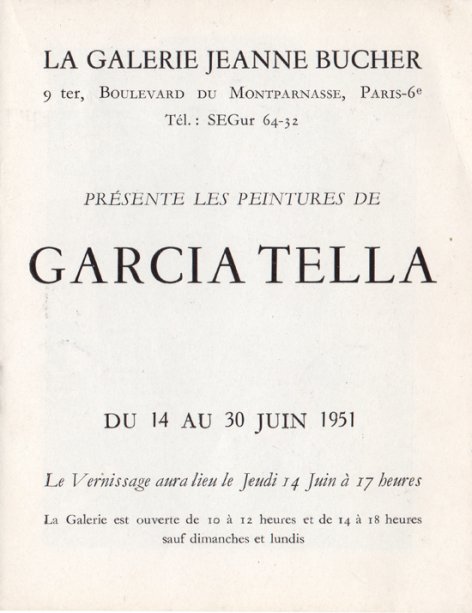 Exposition Galerie Jeanne Bucher, photo 1, Catalogue de l’exposition TELLA préfacé par Henri-Pierre ROCHÉ…. 14 juin – 30 juin 1951 9 décembre 2021 No Comments test Read More