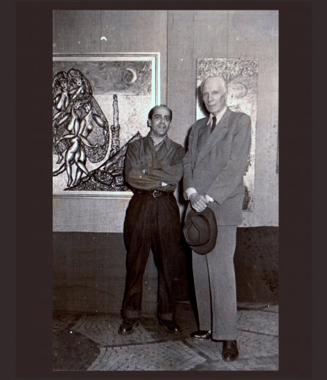 Henri-Pierre Roché et Tella, photo 2, Henri-Pierre ROCHÉ et TELLA, Exposition « Les Artistes Espagnols de France ». Galerie de la Pergola « La Coupole »,Paris juillet 1951, devant les tableaux « Les Etoiles-1951 » et « Eve et la Pomme-1950 » 9 décembre 2021 No Comments test Read More