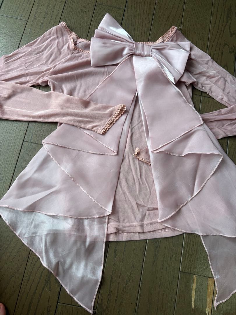 | 商品の特徴 |       パークで1度着用しました。シーハニのように丈が長すぎないデザインです。パフスリーブの部分やデコルテのビーズなど本格的なデザインとなっています。セパレートではなく、ワンピースタイプで背中はボタンになっていますが、自分でもとめやすい作りです。丈は短めですが、ウエスト、バスト周りはMからLサイズ相当です。インナー伸縮性がある生地のためフリーサイズかと思います。着画は157cmで、地面に完全につかないくらいでした。靴が少し見えるかなという感じでした。ご参考にしてください。平置きサイズ(素人採寸のため誤差がごさいます)ウエスト 36cmバスト42cm着丈100cmインナードレス背中のリボン(安全ピン)髪飾り(未使用)以上のセットです。インナーとドレスをつなぐのに安全ピンを使用したため小さな穴があるかもしれません。何かご質問ありましたら、お気軽にどうぞ!